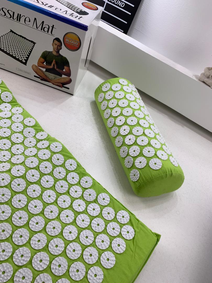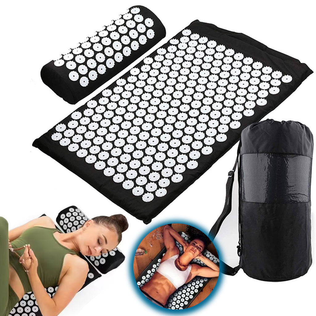 تساعد الحصيرة والوسادة في تخفيف التوتر، والآلام، والتشنجات العضلية، وآلام الرقبة، من خلال تنشيط الدورة الدموية.علاج طبيعي لمشاكل الظهر: